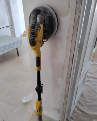 Herramienta de lijado para paredes y techos, ideal para trabajos de pintura. - Mango extensible. - Incluye manguera de aspiración. - Disco de lijado circular.