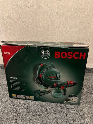 Sistema de pulverización de pintura Bosch PFS 65. - Incluye pistola, depósito y manguera. - Incluye DVD de entrenamiento.