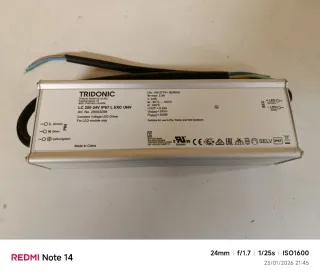 Fuente de alimentación Tridonic LC 200 24V IP67. - Modelo: LC 200 24V IP67 L EXC UNV. - Voltaje de salida: 24V. - Potencia: 200W. - Apto para uso en exteriores (Dry, Damp y Wet locations). - Fabricado en China.