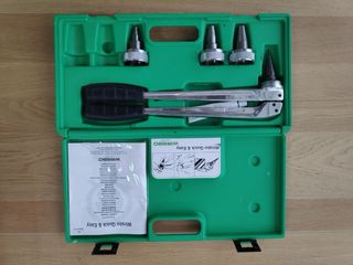 Kit de herramientas manuales para la expansión de tubos. - Incluye expansor y accesorios. - Estuche verde para almacenamiento.