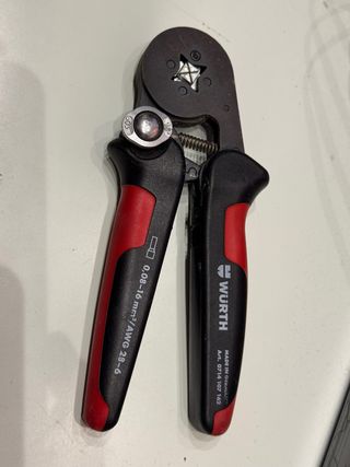 Herramienta de crimpado Würth con ajuste para diferentes calibres. - Rango de crimpado: 0,08-16 mm² / AWG 28-6. - Fabricada en Alemania. - Modelo: Art. 0714 107 162.
