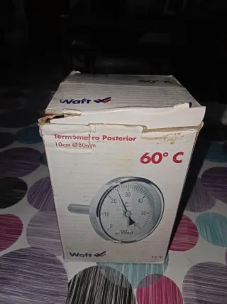 2 UNIDADES 6€ cadaunidad. Termómetro bimetálico de la marca Waft, diseñado para mediciones posteriores. - Modelo: Posterior - Diámetro: 80mm - Longitud del vástago: 10cm - Rango de temperatura: 60°C termómetro bimetálico de la marca Waft. Los termómetros bimetálicos son instrumentos utilizados para medir la temperatura en aplicaciones industriales, comerciales y domésticas. Funcionan basándose en la diferencia en el coeficiente de dilatación de dos metales distintos unidos entre sí. El modelo en la caja es un termómetro posterior, con un diámetro de esfera de 80 mm y una longitud de sonda de 10 cm, y tiene un rango de medición d