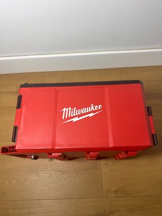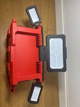 Foco Milwaukee de color rojo nuevo sin estrenar. - Nuevo sin estrenar. - Tres focos. - Sin batería (se puede añadir batería y cargador). - Cable para cargar. - Asa para transporte.