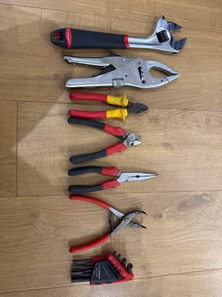 Conjunto de herramientas de la marca Facom. - Llave ajustable. - Alicates de presión. - Alicates de corte. - Alicates universales. - Alicates de punta. - Tenazas. - Juego de llaves Allen.