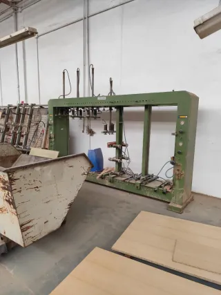 Se vende maquinaria industrial para trabajar la madera. Ideal para talleres profesionales.precios a convenir. - Diferentes modelos y precios. - Estructuras robustas de color verde. - Panel de control con cableado visible. - Incluye mesa de trabajo auxiliar con ruedas.