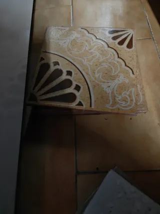 Baldosas cerámicas con un diseño antiguo y elegante. Perfectas para dar un toque clásico a cualquier espacio. ( 1€ la pieza) - Diseño floral en tonos beige y marrón. - Acabado mate.