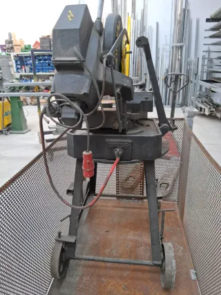 Tronzadora de hierro marca Fácil, modelo 370. - Base metálica robusta. - Brazo de corte ajustable. - Sistema de sujeción de material.
