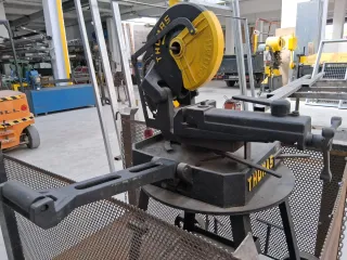 Tronzadora de disco para corte de hierro, equipada con sistema de lubricación. - Disco de corte incluido. - Base con ruedas para fácil movilidad. - Palanca de accionamiento robusta.