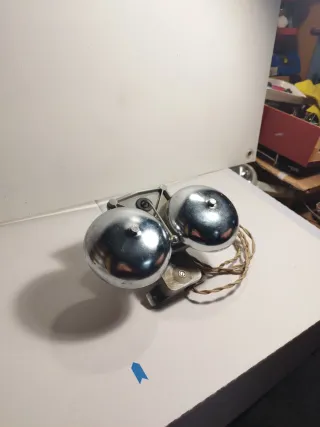 Timbre doble metálico de los años 80. Un objeto con un diseño clásico. - Material: Metal cromado. - Diseño de doble campana. - Fabricado por Andisa - Funciona