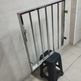 Reja de seguridad fabricada en acero inoxidable. - Material: Acero inoxidable. - Diseño con barrotes verticales.