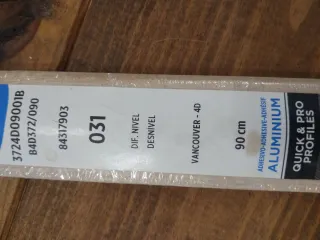 Nuevo, precinado . Perfil de aluminio de la marca Bagli Nox, modelo Vancouver 4D. - Longitud: 90 cm - Material: Aluminio - Tipo: Quick & Pro Profiles - Grosor: 3-12 mm - Ancho: 38 mm - Fabricado en España Lo compré nuevo y no pude cambiarlo porque perdí el tiquet.