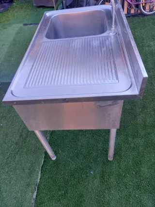 Fregadero de acero inoxidable con escurridor. - Material: Acero inoxidable. - Diseño con cubeta y escurridor. - Grifo incluido.