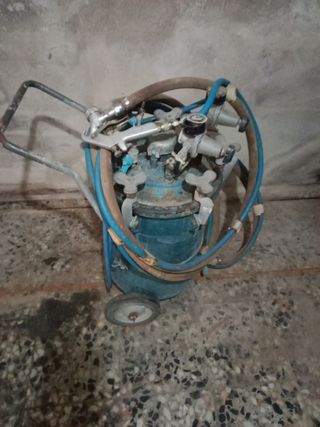 Se vende máquina proyectora de gotele. Es una pieza antigua, con señales de uso y desgaste, pero que conserva su estructura. - Ideal para trabajos de pintura. - Dispone de dos manómetros. - Incluye ruedas para facilitar su transporte. - Se encuentra en buen estado general.