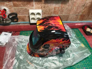 Casco de soldadura con pantalla electrónica. - Diseño de llamas en negro. Nueva a estrenar tres niveles de ajuste visual - Pantalla electrónica. Antigüedades , segunda, nuevos, precios stop, bricolaje, adornos, regalos, rebajas, casa, chalet, taller, granjas, almacén, huerto, campo, camping, senderismo, marcha, coche, camión, cerrajería, electricidad, segunda residencia, fontanería, chalet, habitación, garage, ocina, salón, camping, senderismo, electrodomésticos, vitrinas, colección, hogar, muebles, antigüedades, decoración, carros, herramientas, soldadura, maquinas, ocasiones segunda mano , más ventas en perfil.
