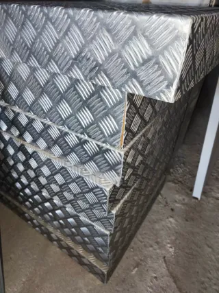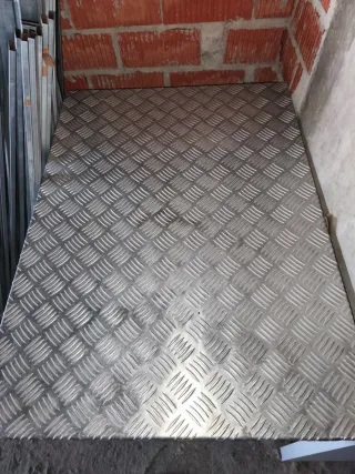 Se venden 8 planchas de aluminio con acabado damero a 30 € cada una o 200€ las 8, ideales para superficies antideslizantes. - Material: Aluminio. - Diseño: Damero. - Propiedad: Antideslizante.