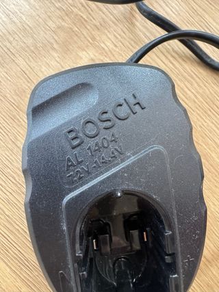 Batería recargable Bosch + cargador original. - Cargador modelo AL 1404. - Voltaje de entrada 230V. - Voltaje de salida 14.4V. • En buen estado y funcionando correctamente. • Compatible con herramientas Bosch (ver fotos para comprobar compatibilidad). • Se vende porque ya no se usa.
