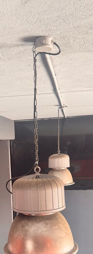 Foco industrial con acabado metálico reflectante. Ideal para iluminar espacios amplios. - Diseño circular. - Bombilla LED integrada.