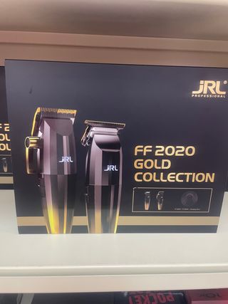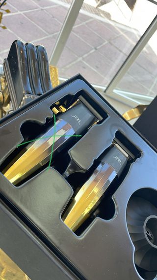 Máquina cortapelo JRL FF 2020 Gold Collection. Diseño elegante y profesional. - Acabado en color dorado y negro. - Incluye dos cortapelos y base de carga.