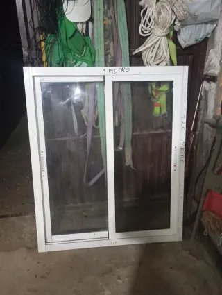 Ventana corredera de aluminio con acabado de efecto espejo. Ideal para dar amplitud y luminosidad a cualquier estancia.medidaa 1.50 MTS ancho* 80 CMS alto medidas de fuera a fuera - Marco de aluminio blanco. - Cristal con efecto espejo.