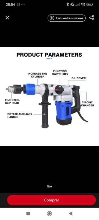 Taladro percutor con cable y todos sus accesorios. - Incluye maletín para guardarlo. - Viene con brocas y cinceles. - Incluye tubo de grasa lubricante.