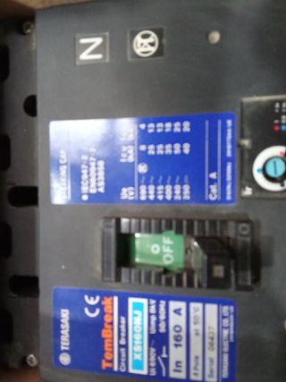 Interruptor magnetotérmico Terasaki TemBreak. 4 polos 160 amperios medidas 0,14 de ancho 16,5 largo 8,5 alto tornilleria allen peso 3 kilos aprosimadamente - Modelo: XSI60NJ - Corriente nominal (In): 160 A - Polos: 4 - Tensión nominal (Ue): 690V - Frecuencia: 50/60Hz - Categoría: A - Certificaciones: IEC947-2, EN60947, AS3858