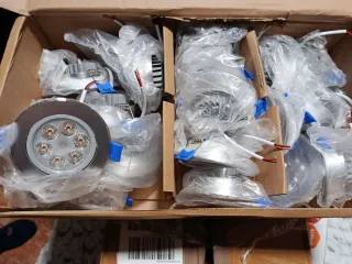 Se vende caja con 20 focos LED, ideales para iluminación. - Focos LED de bajo consumo. - Diseño moderno y compacto. - Listos para instalar.