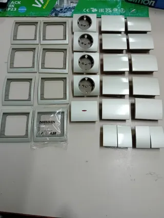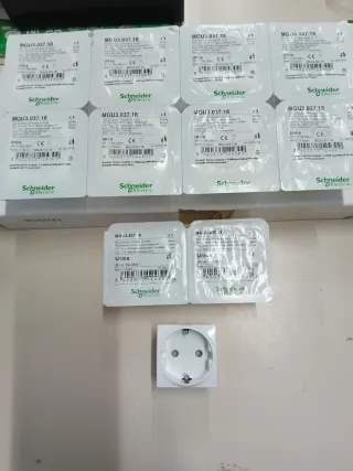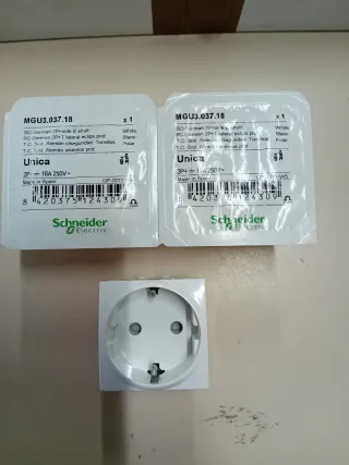 Vendo material Schneider Electric Única en color blanco, 6 enchufes schuko, 4 conmutadores anchos, 2 cruzamientos, 12 bastidores metálicos, 2 marcos triples, 1 marco doble cava blanco y 1 marco triple cava marfil. Hago envíos.