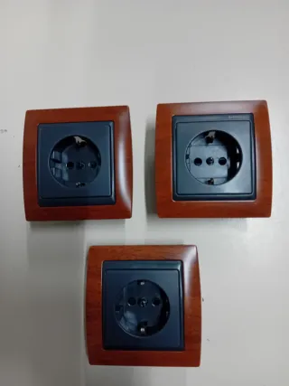 Vendo de Simón 82, enchufes schuko con toma de tierra lateral y marcos de cerezo grafito, según fotos del anuncio. Consultar el precio. Hago envíos.