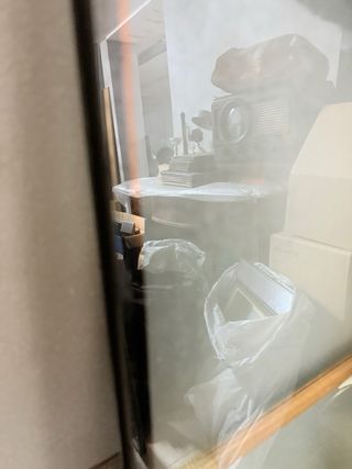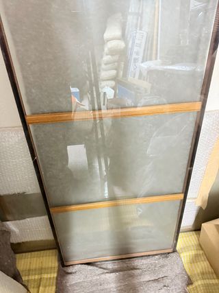 Cristales opacos para ventana, ideales para privacidad. - Diseño con listones de madera. - Marco oscuro. Se puede vender por separado o juntos Son de dos ventanas de baño