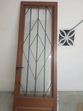 Puerta Madera y Hierro con Reja y cristal .