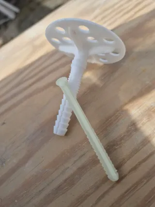 Se venden 163 tacos para fijación de paneles aislantes. - Taco de plástico blanco con plato. - Clavija de plástico amarillo.