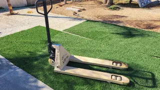 Transpaleta manual en buen estado, lista para usar. - Capacidad de carga: 2500 kg. - Ruedas resistentes para facilitar el movimiento. - Diseño robusto y duradero.