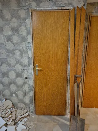 Conjunto de cinco puertas de madera maciza de pino del norte. - Material: Madera maciza de pino. - Estilo: Diseño clásico con paneles. - Acabado: Madera natural. - Manetas incluidas. - Marcos incluidos. Se podrán recoger desmontadas a mediados o finales de abril. Si se necesitan antes tendran que venir a desmontarlas para llevarselas. Tener en cuanta que hay dos puertas que se tienen que lijar porque no cierran bien, rozan con el marco.