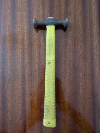 Martillo con mango de goma amarillo y cabeza de metal. - Mango ergonómico. - Cabeza de doble cara.