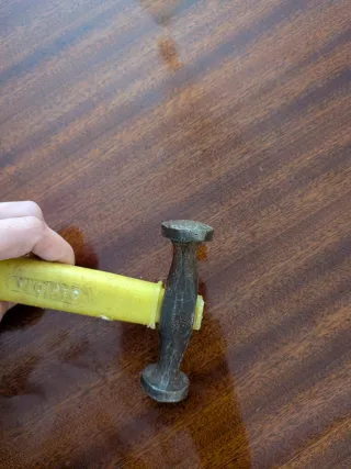 Herramienta manual con mango de madera. - Cabeza de plástico - Mango largo de madera.