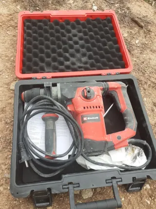 Se vende martillo eléctrico de la marca Einhell, ideal para trabajos de demolición y perforación. Incluye su maletín original para un fácil transporte y almacenamiento. - Martillo eléctrico Einhell. - Maletín de transporte. - Incluye brocas y cinceles.