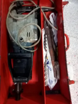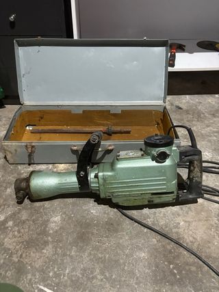 Martillo percutor Hitachi con varios cinceles para trabajos de demolición. - Incluye cincel plano. - Incluye cincel puntiagudo. - Incluye cincel de pala. HERRAMIENTA DE CONSTRUCCION, TAL CUAL SE VE EN LAS FOTOS, PROBADA EXHAUSTIVAMENTE.