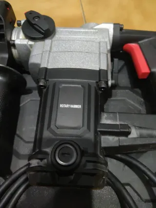 Martillo percutor marca Rotary Hammer, ideal para trabajos de construcción y demolición. - Incluye maletín para transporte. - Mango auxiliar para mayor control. - Cable de alimentación.