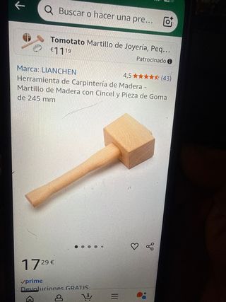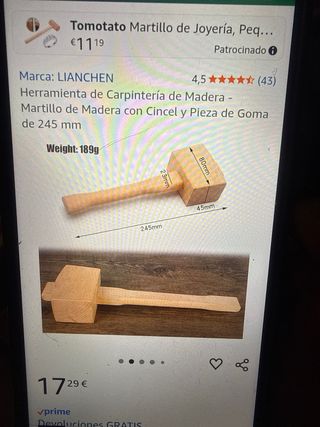 Martillo de carpintería de madera con cincel y pieza de goma. - Material: Madera. - Longitud: 245 mm.