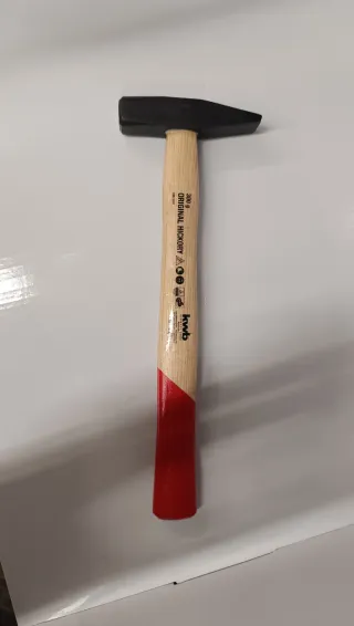 Martillo de carpintero de la marca KWB, con mango de madera de nogal. - Peso: 300 gramos. - Mango de madera de nogal. - Parte del mango pintada en rojo.