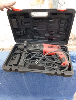 Martillo perforador Dexter de 1100W, con maletín. - Impacto: 3,3 J - Auto-lock - 4m de cable - SDS+ Chuck - 4 funciones - Empuñadura ergonómica - Gatillo de velocidad progresiva con limitador - incluye 2 cinceles En perfecto estado. Utilizado en una sola ocasión. Aún en garantía (dos años) Regalo cajetín con 4 cinceles suplementarios (ver fotos)