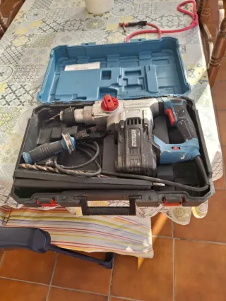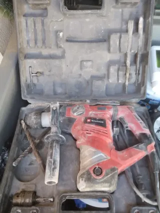 Martillo percutor y taladro de la marca Einhell, con muy poco uso y en su maletín. - Incluye maletín de transporte con interior de espuma. - Incluye mango auxiliar y manual de instrucciones. - Aun con año y medio de GARANTIA - Comprado para la reforma de mi casa, mayormente usado para la apertura de la canalizacion electrica Mas informacion al 625471817