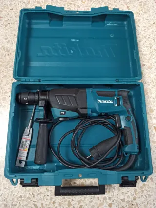 Martillo demoledor Makita. - Mango auxiliar. - Incluye maletín de transporte. El Cinesel no se queda enganchado Hay que cambiar la cabeza o usarlo así, por lo demás el funciona bien