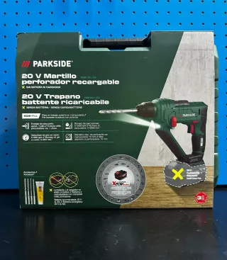 Martillo perforador recargable Parkside 20V. - Incluye martillo perforador. - Batería y cargador incluidos.