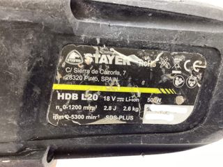Martillo combinado Stayer, modelo HDB L20. Añade batería de 4Ah y cargador. Función taladro y martillo. Enganche de broca SDS. Producto con garantía. Hacemos envíos a toda España (salvo Canarias, Ceuta y Melilla). Tienda en C/Sambara 101, Madrid. Teléfono 912600555. Síguenos en Facebook e Instagram tutiendadesegundamano. Visita nuestra web tutiendadesegundamano.