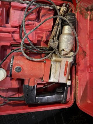 Martillo demoledor eléctrico en su maletín. - Incluye cincel y broca. - Maletín rojo. - Cable de alimentación.