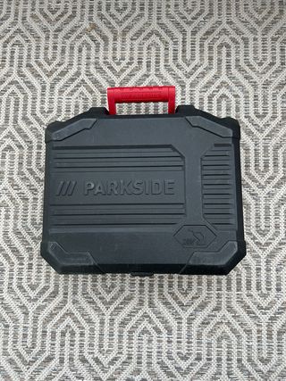 Maleta negra para martillo perforador Parkside. Cuenta con un asa roja para facilitar su transporte. - Marca: Parkside - Color: Negro y rojo - Voltaje: 20V