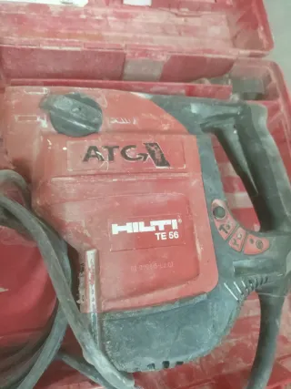 Martillo percutor Hilti TE 56 en su maletín. NO FUNCIONA PARA PIEZAS - Incluye maletín de transporte. - Cable de alimentación.