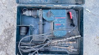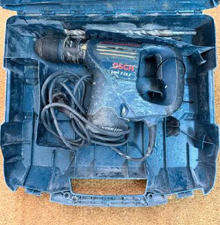 Martillo electroneumático usado para realizar una reforma. Las características técnicas salen en las fotos. -Incluye maletín para transporte dos brocas que venían de serie y además otras dos brocas extras que cada una tiene un pvp de 25€.