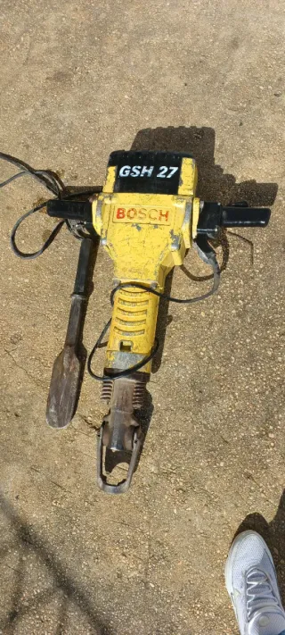 Martillo de demolición marca Bosch, modelo GSH 27. Herramienta potente para trabajos de construcción. - Color amarillo. - Incluye cincel. - Mango auxiliar.